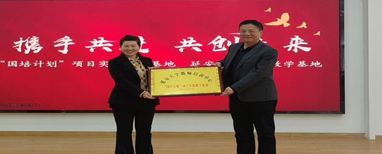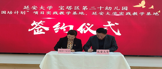 为落实学校第七次党代会“1195”工作布局和“3331”总体部署,加强校地合作融合,深化高校与幼儿园协同育人机制,构建学前教育高质量发展共同体,2025年4月17日上午,教科院与宝塔区第二十幼儿园举行“携手共进,共创未来”国培计划项目和学前教育专业实践教学双基地签约暨授牌仪式在宝塔区二十幼举行。延大教科院长刘瑞儒、副院长冯晓江、学前教育系主任李丽娥、延安市教育教学研究中心主任冯付军、宝塔区教育体育局局长郭颖健、延安市宝塔区人民政府教育督导室主任白富宏、二十幼校长焦忠玲及教师代表共同出席了签约授牌仪式。活动由白富宏主任主持。